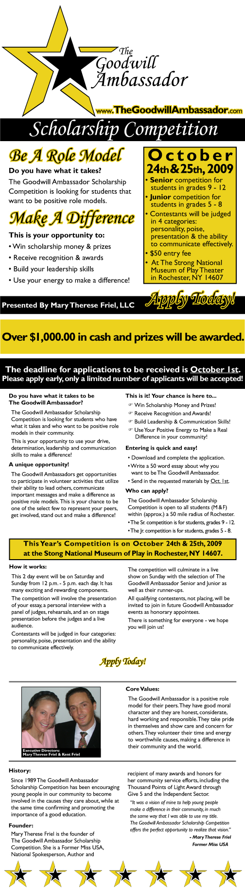 The Goodwill Ambassador Scholarship Competition, October 24th & 25th, 2009